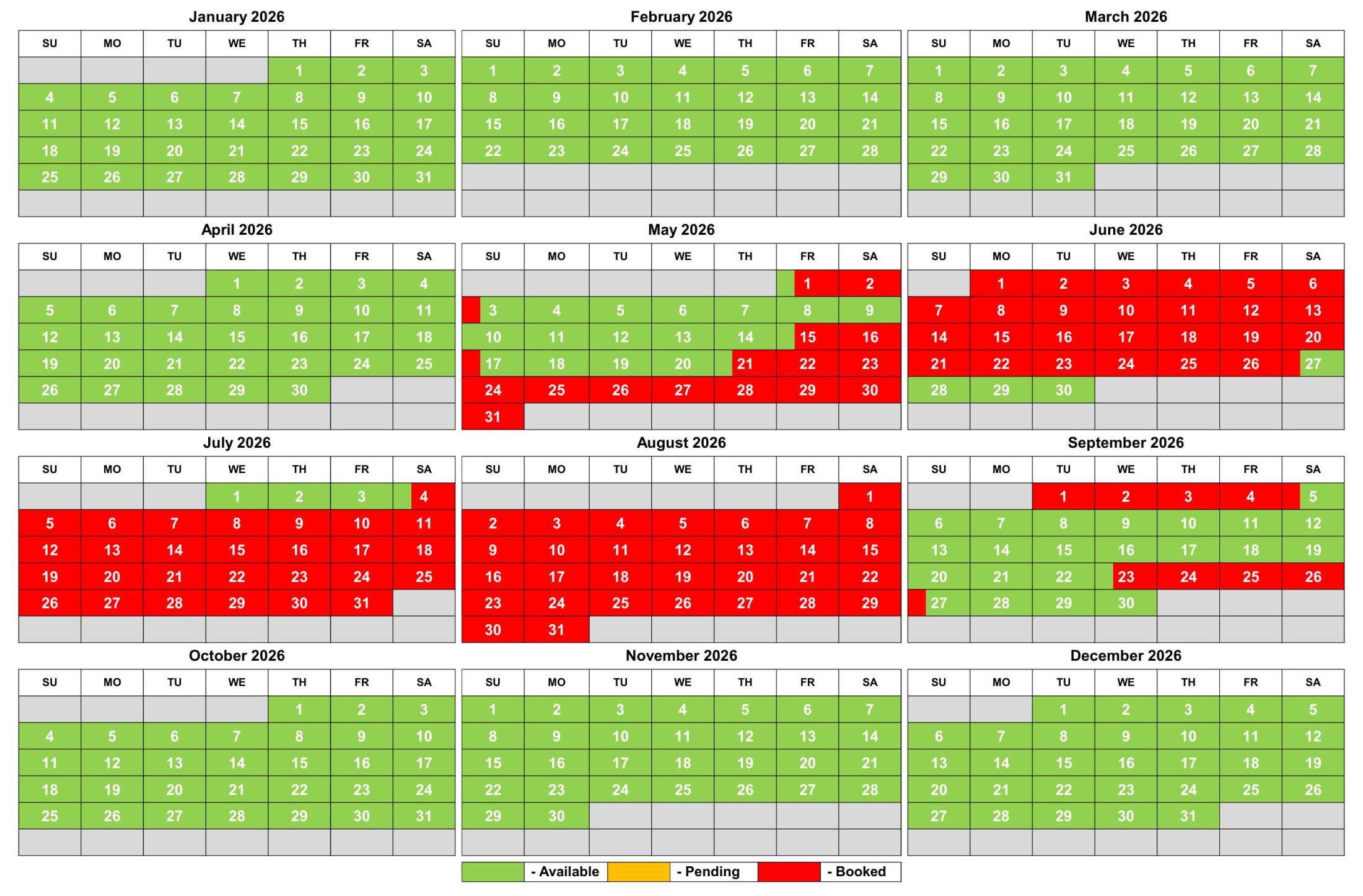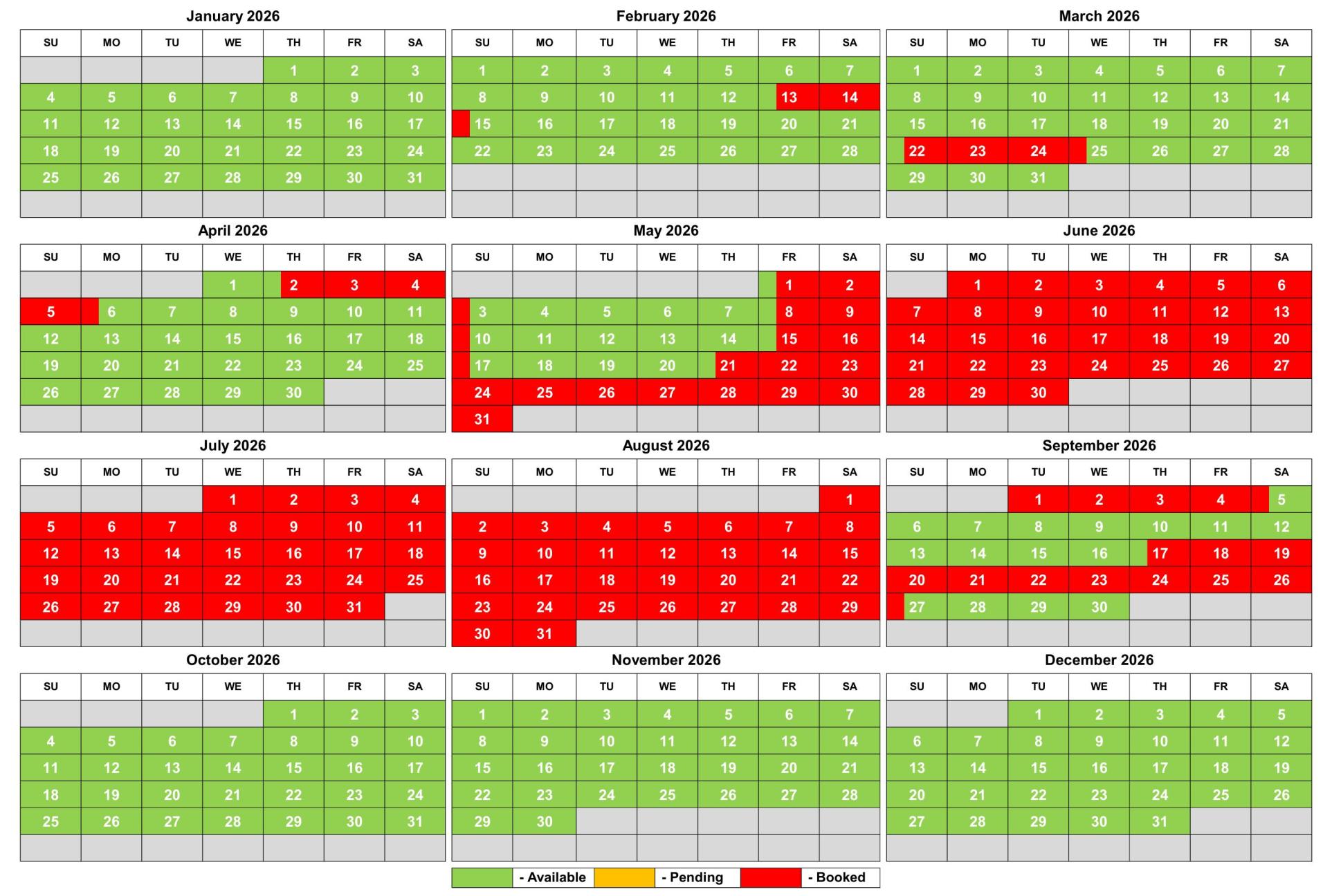 | September 26, 2026 (Weekend) | Booked | Booked |